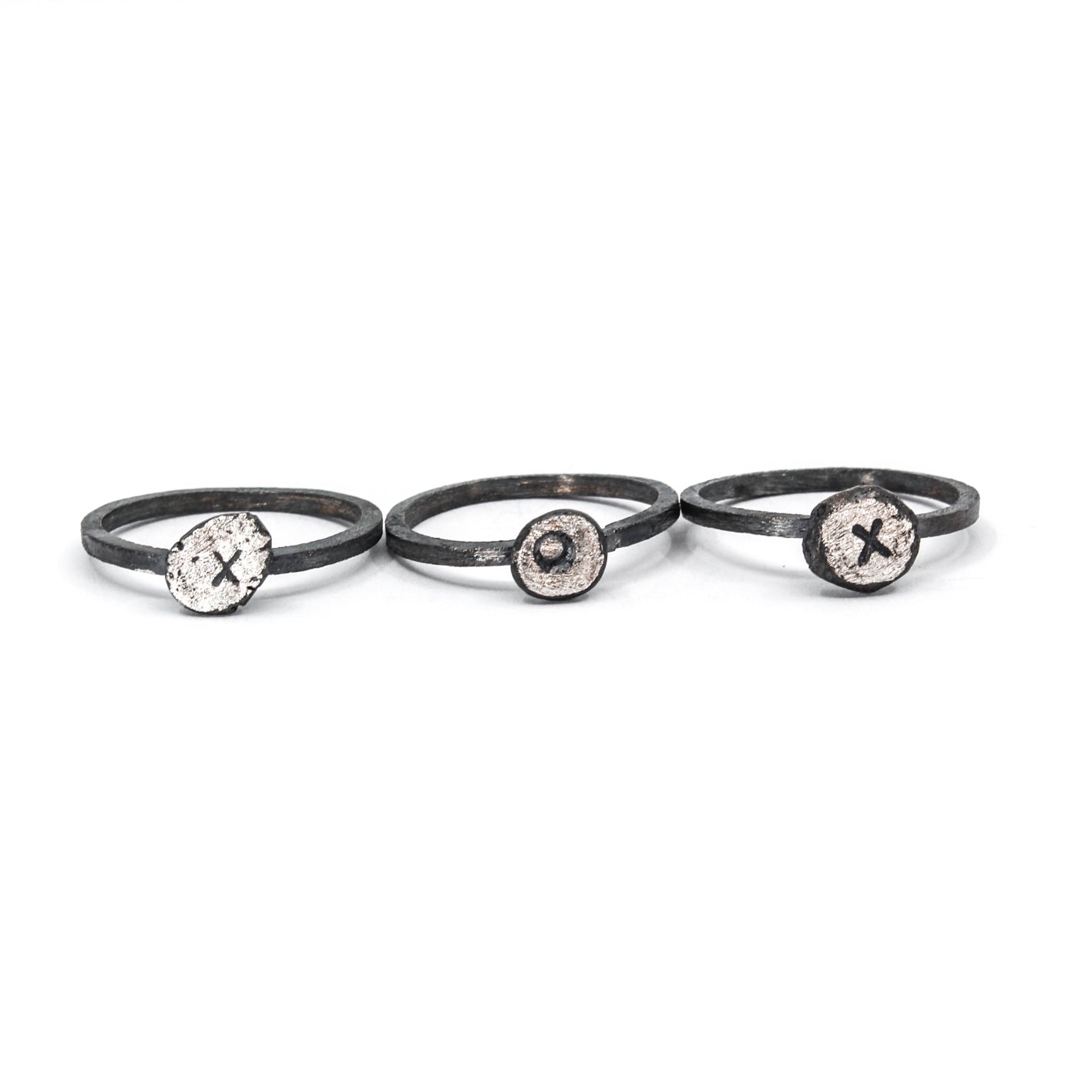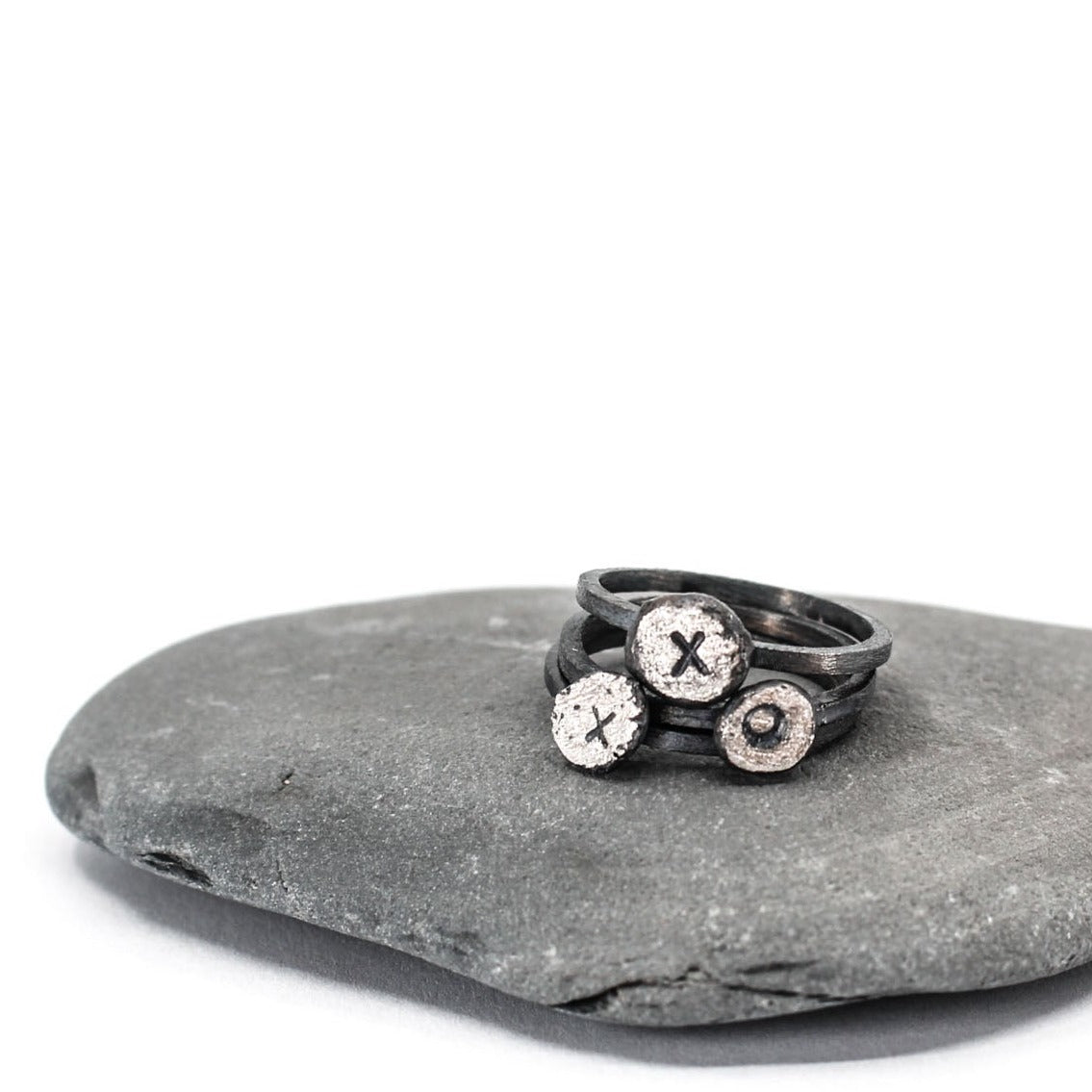 3 eco sterling silver stacking rings • handstamped xox • personalisable