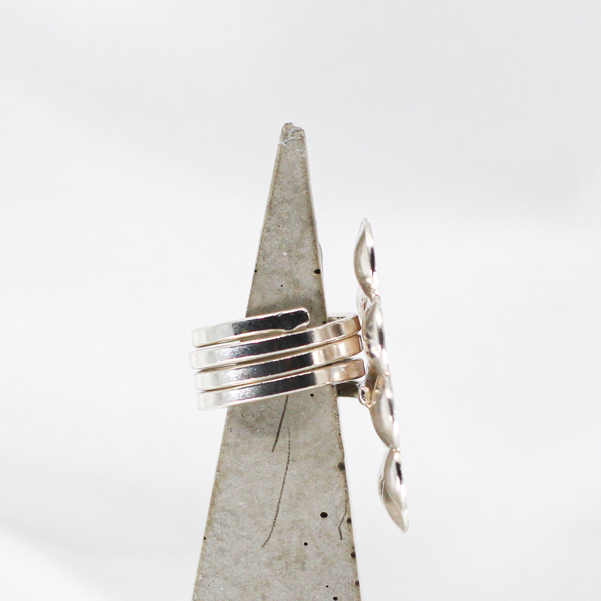 Make a statement with this large one-of-a-kind, adjustable silver flower ring.