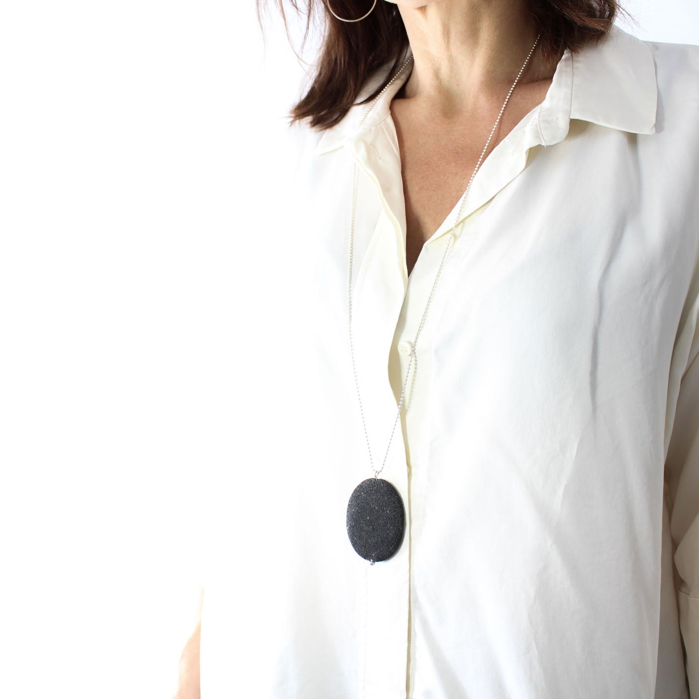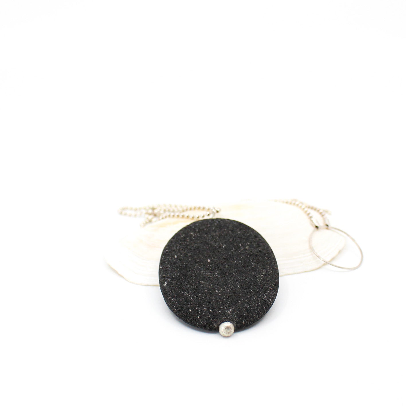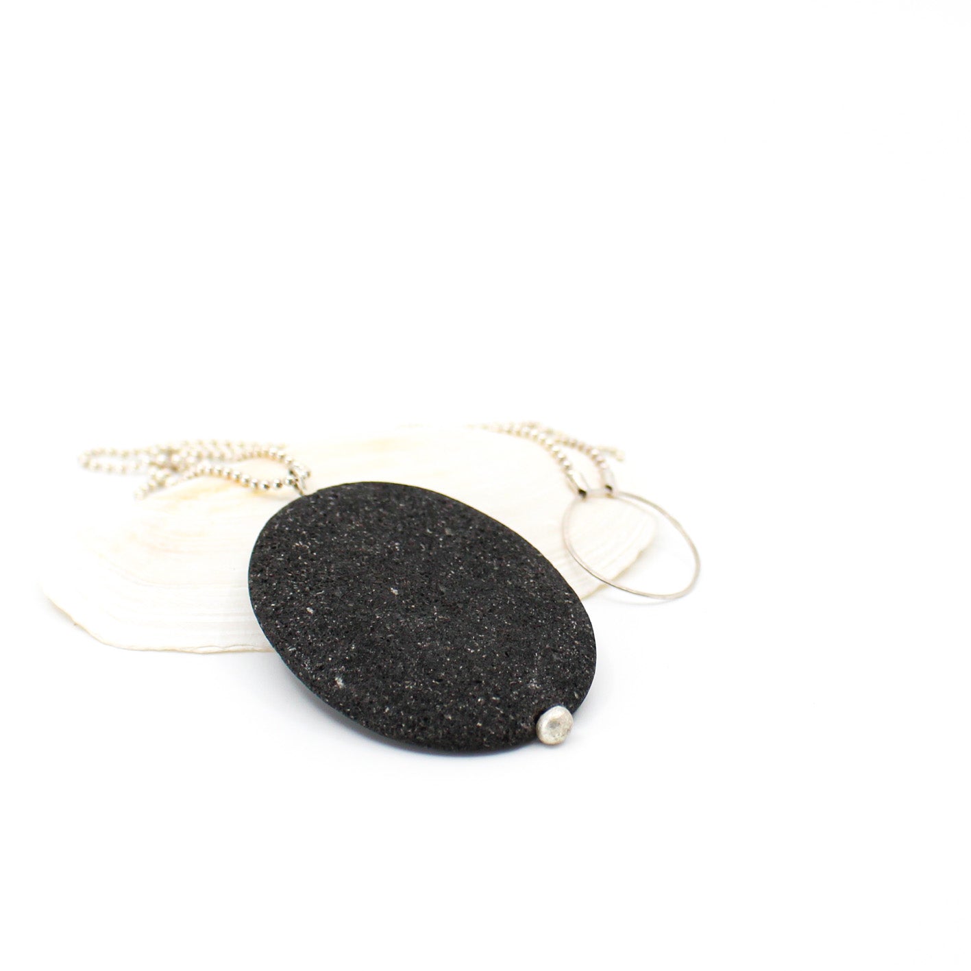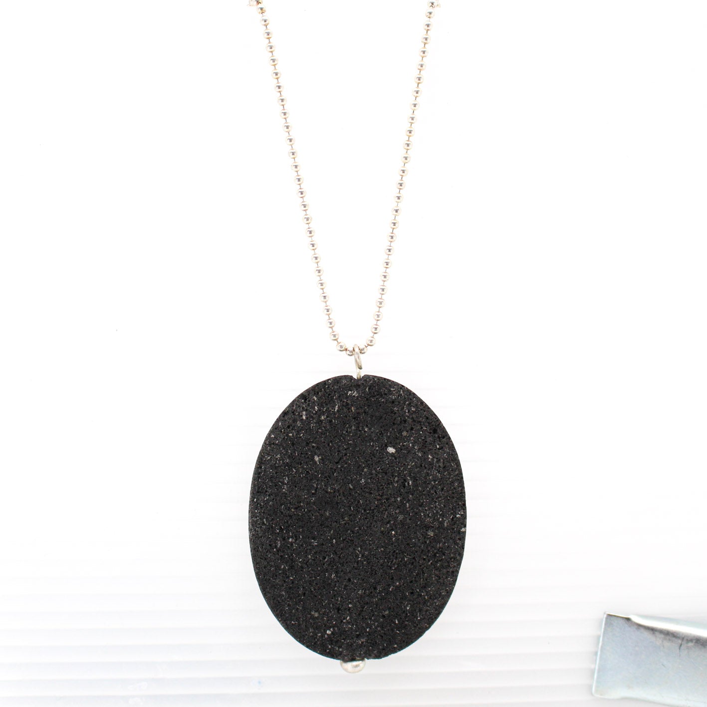 Embrace boldness with this handmade pendant necklace featuring a big oval lava stone.