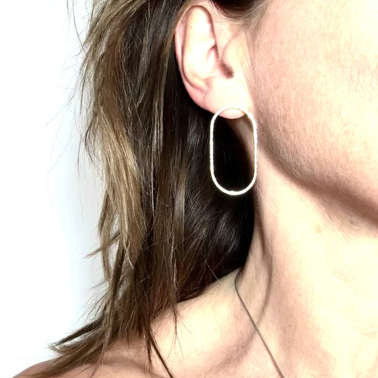Elevate your style with these stunning handmade gold oval stud earrings.