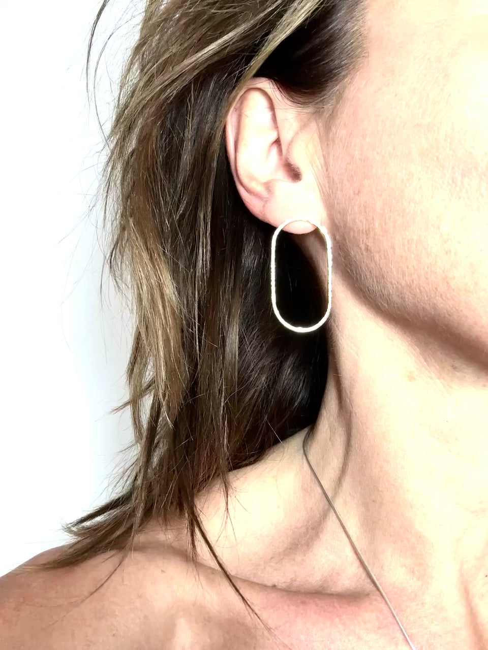 These delicate hammered oval earrings in eco-friendly sterling silver gold plated in high quality 3 micron 14ct gold were crafted by hand in my studio in the South of France.