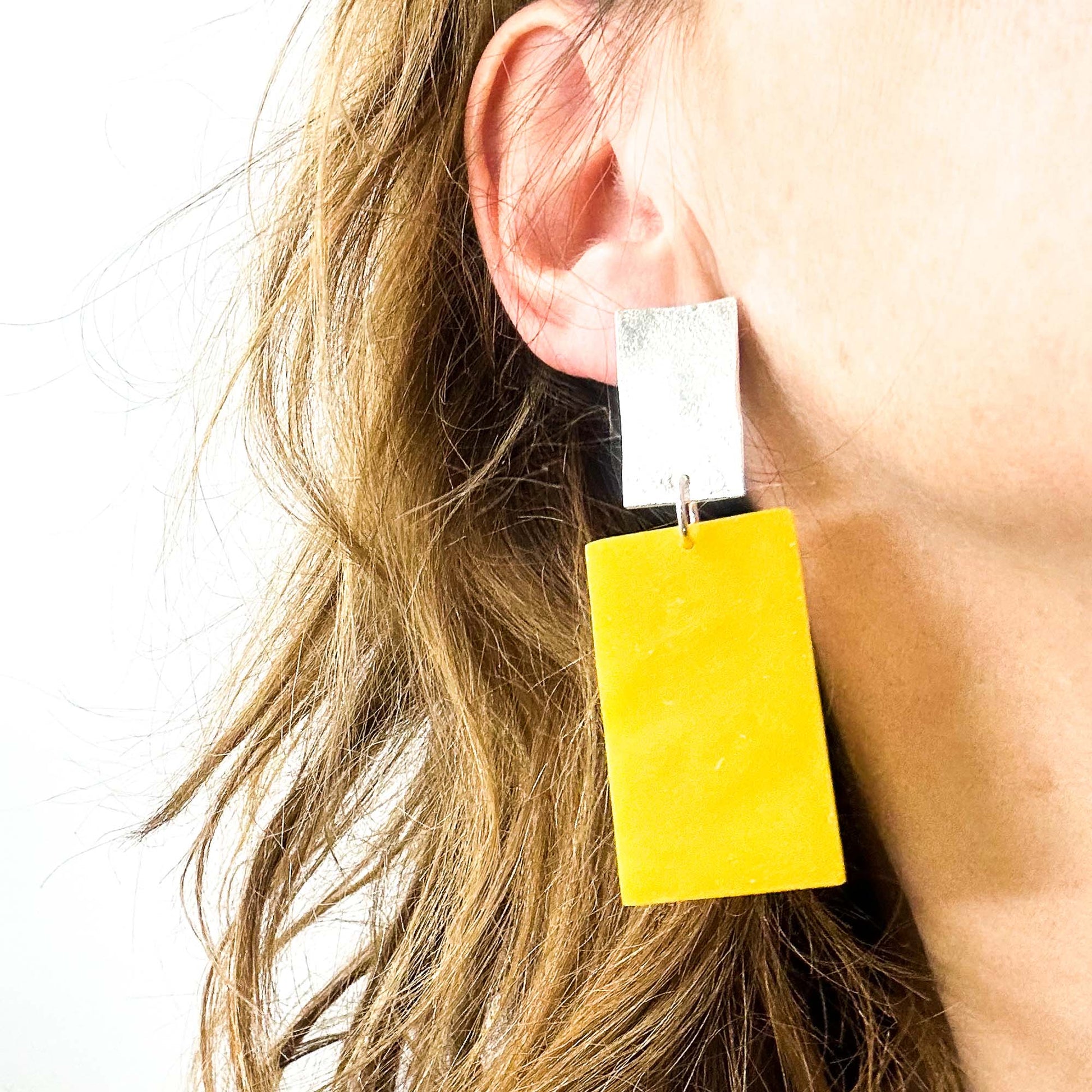 These minimalist geometric earrings are an unique accessory, easy and lightweight to wear.