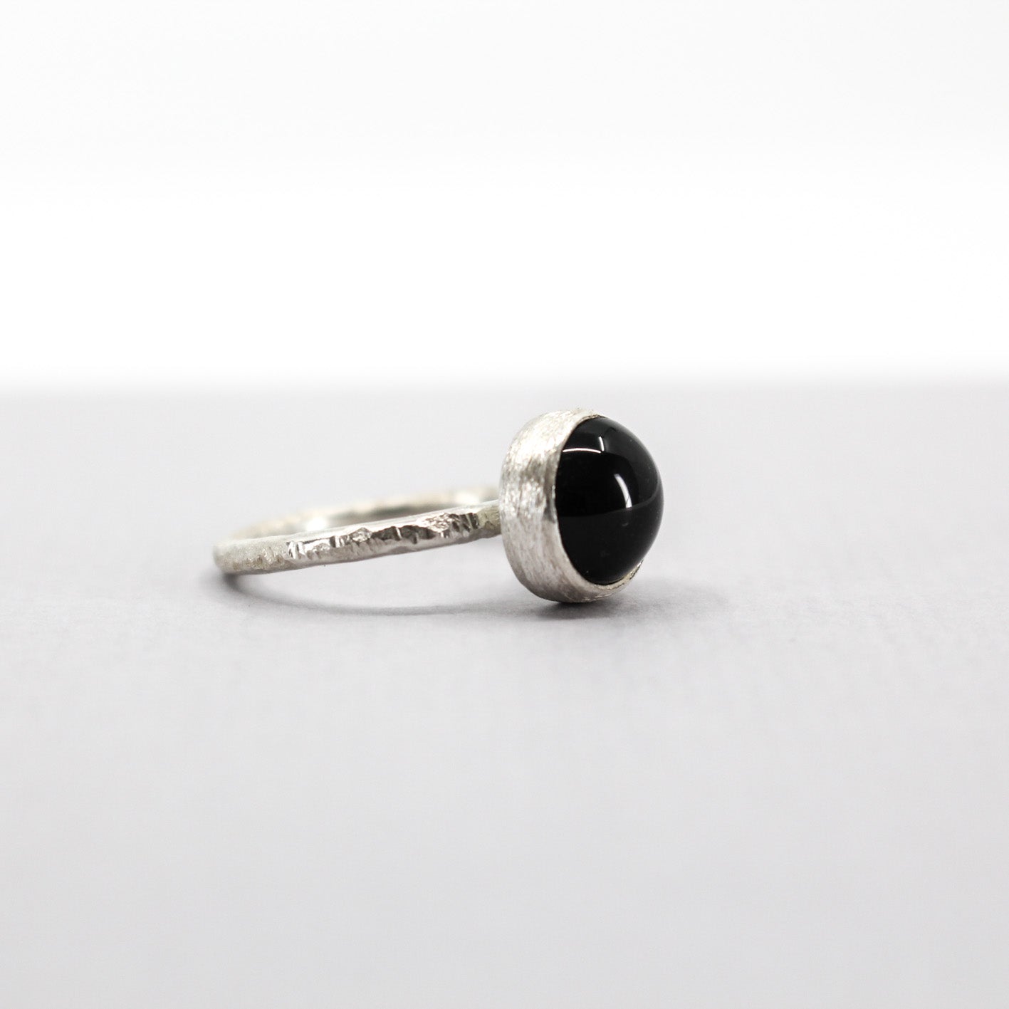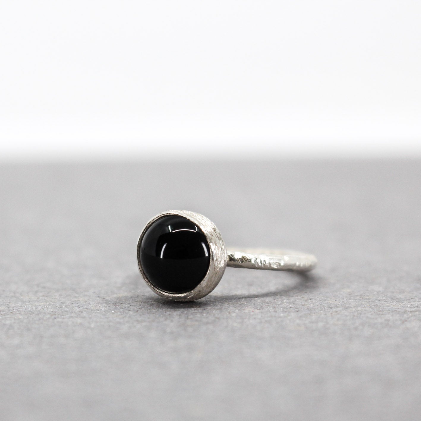 Make a minimalist statement with this handmade black onyx silver ring.