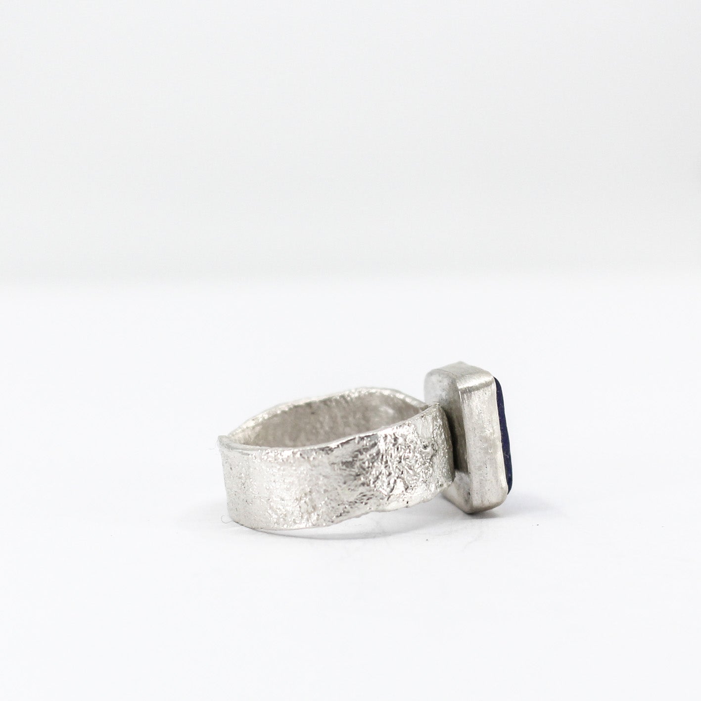 rare blue French sea glass silver statement ring in 925 eco sterling silver