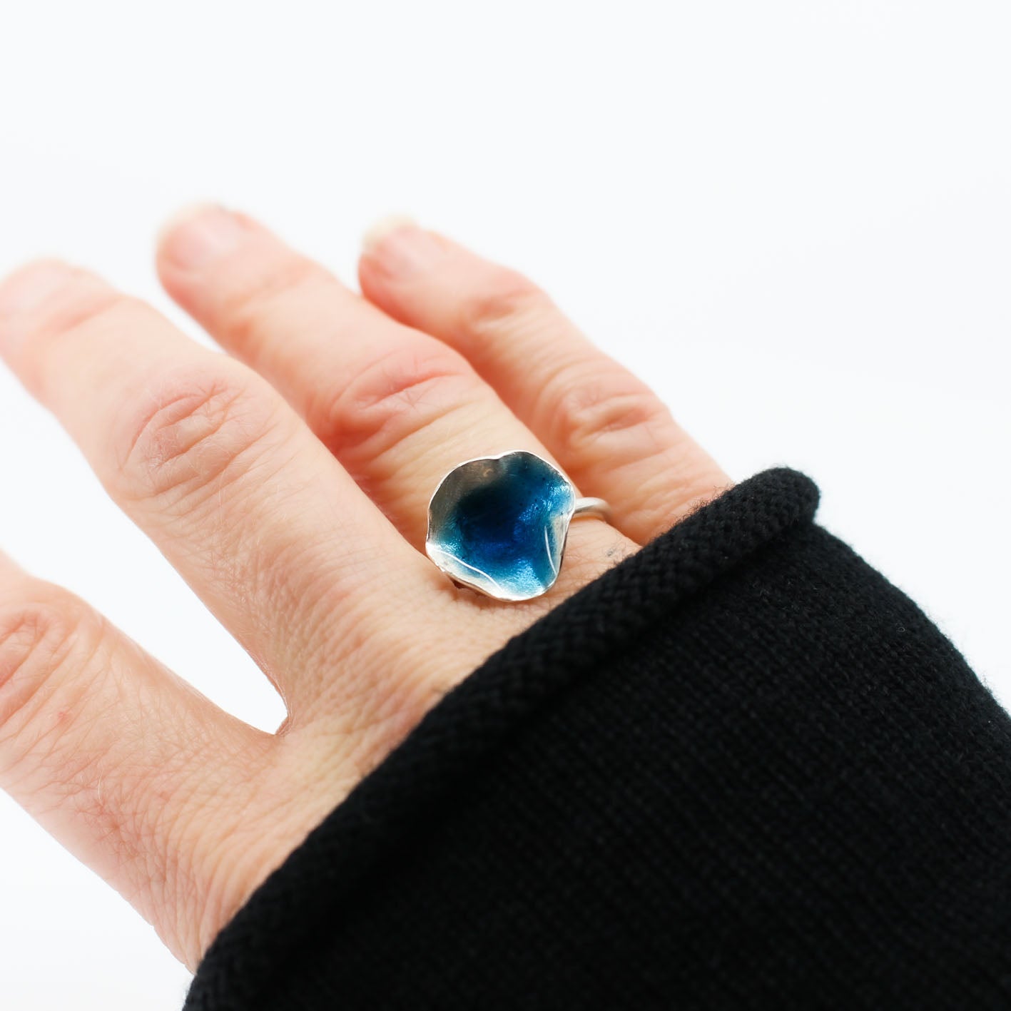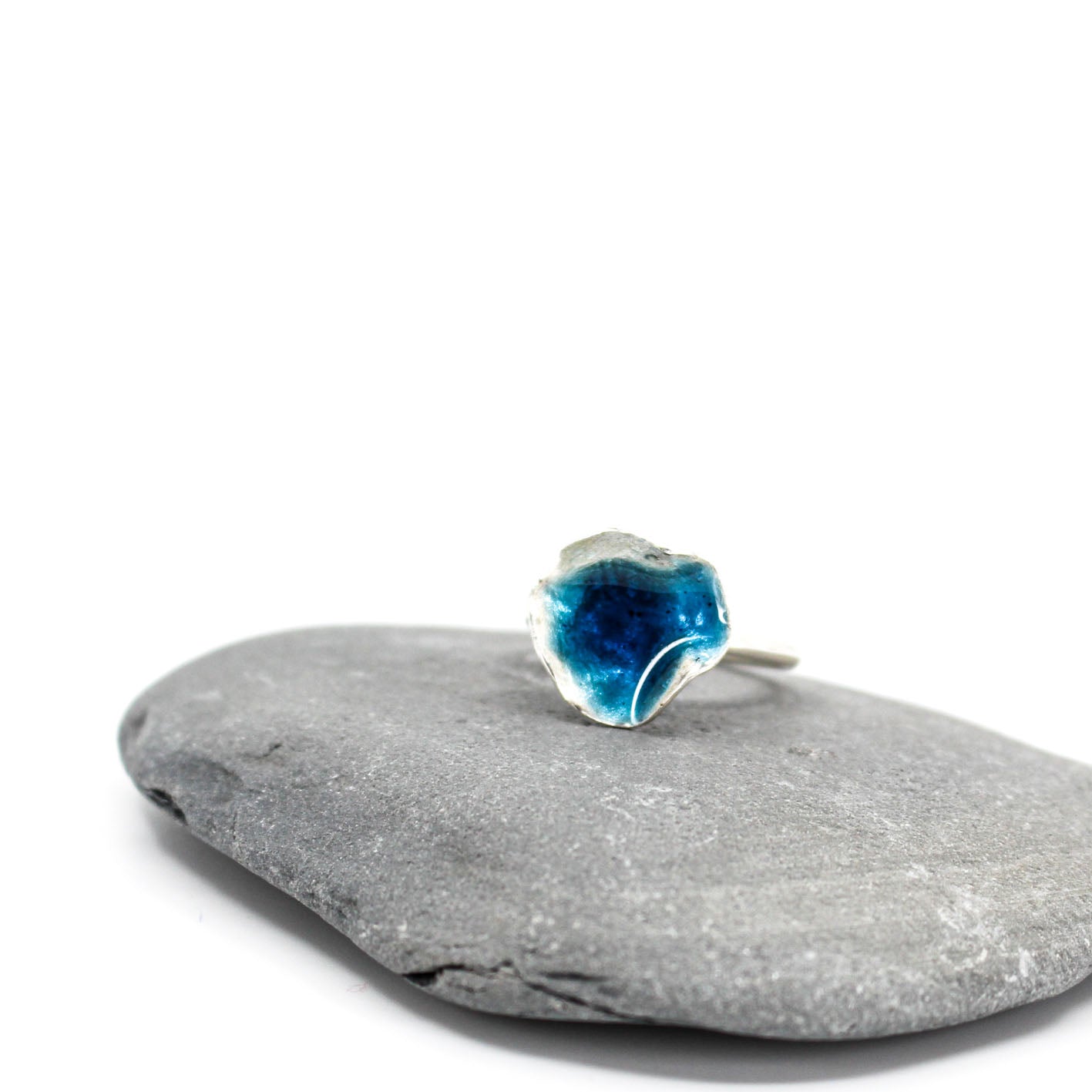 minimalist blue ring in 925 eco sterling silver coated with ocean blue resin