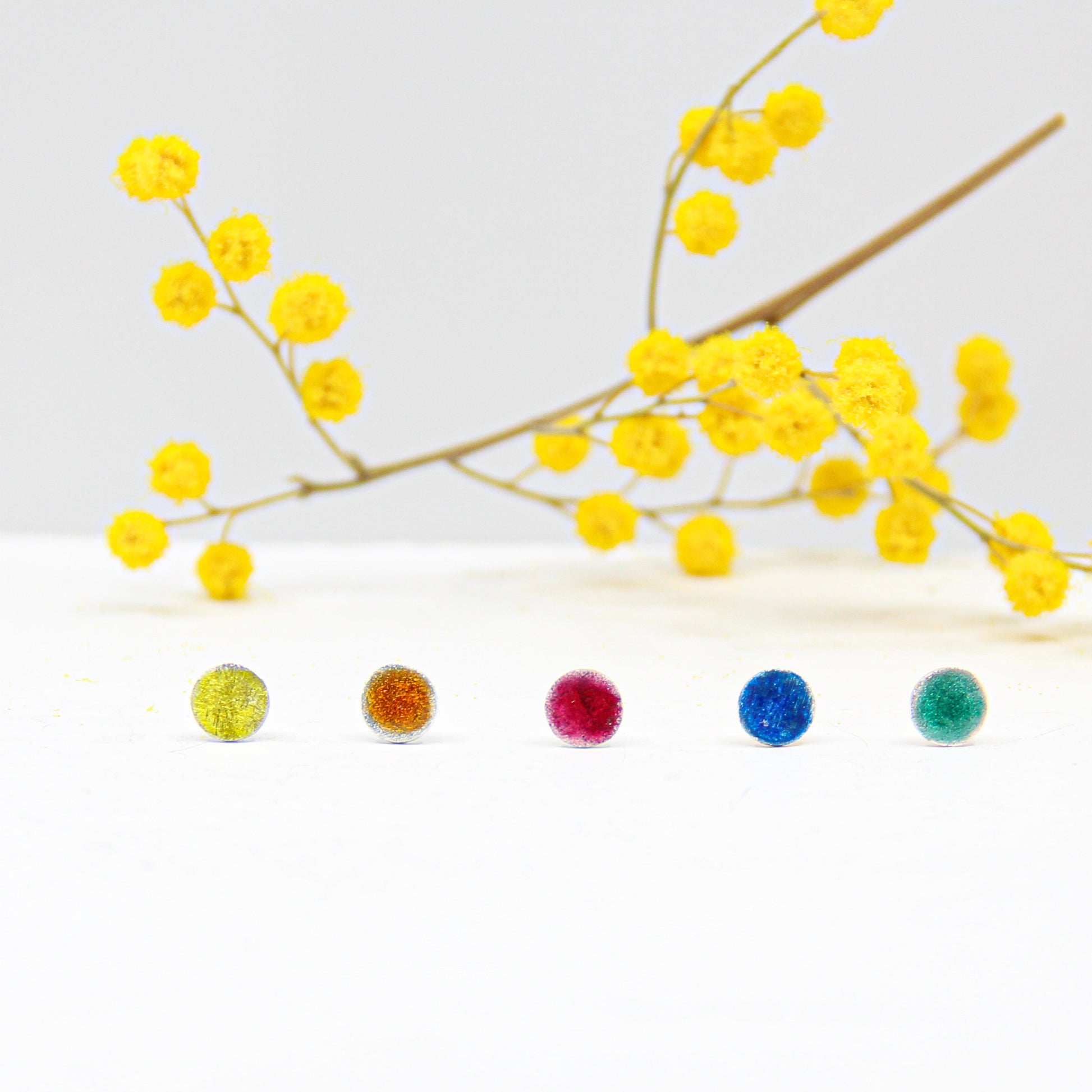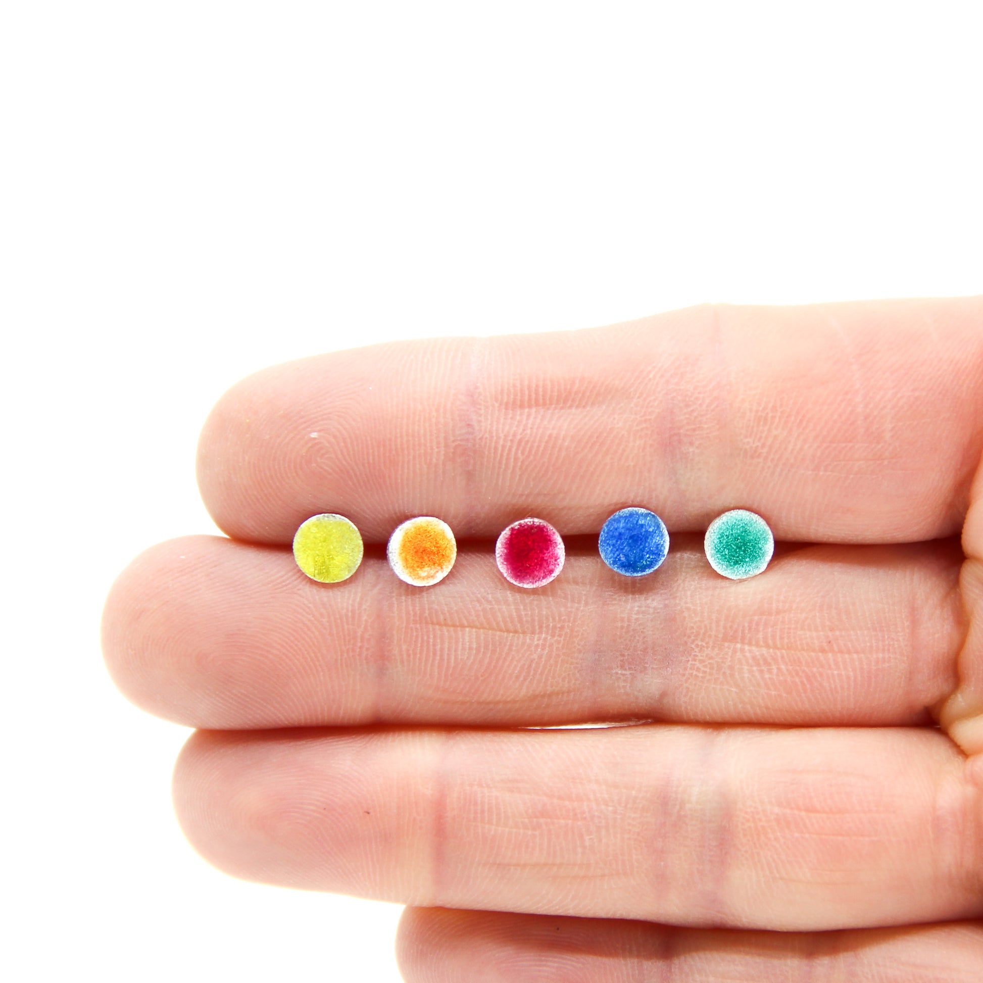 one rainbow stud to mix and match • small minimalist round silver stud earring in different colours