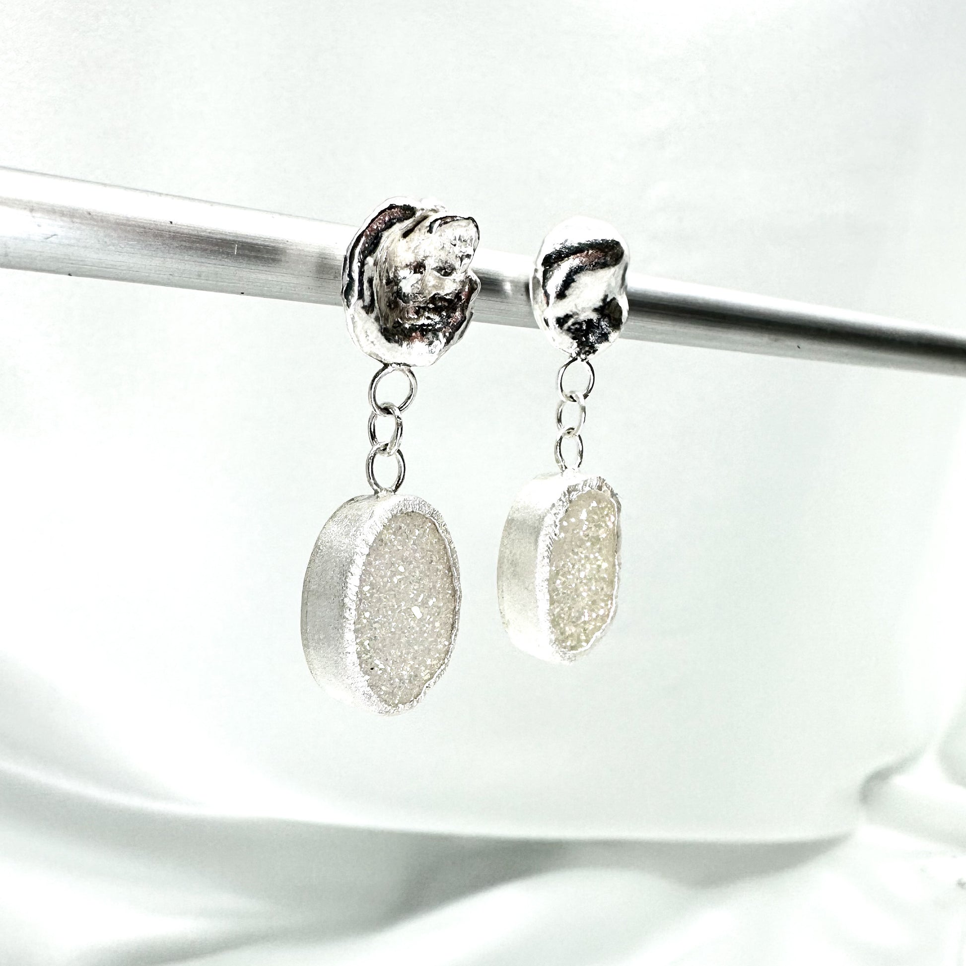 Stunning White Druzy Quartz Drop Earrings in Sterling Silver