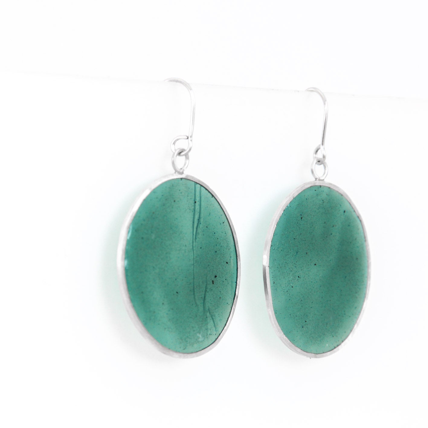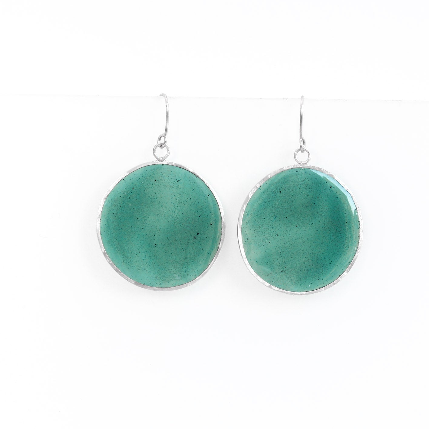 These green sterling silver lightweight resin drop earrings are handcrafted in my studio in France.