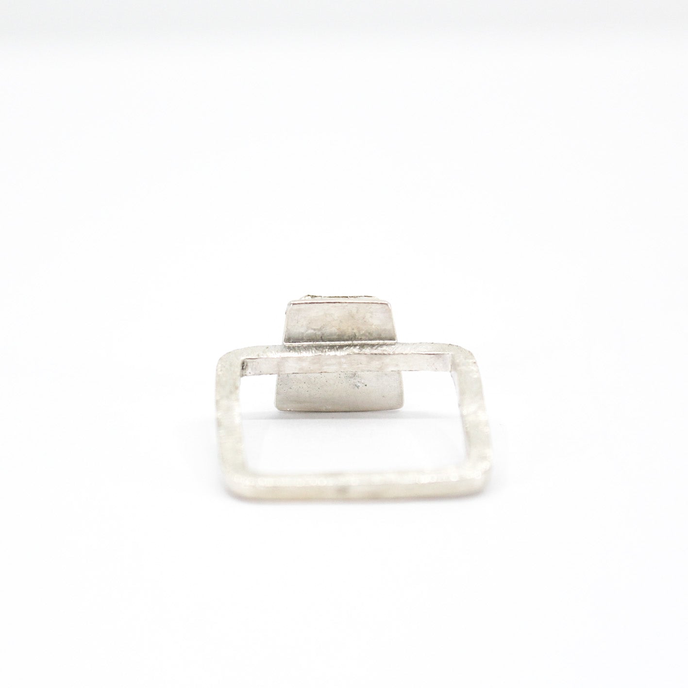 The opal is expertly set on a hammered square band crafted from 925 eco sterling silver, adding a touch of sophistication to any ensemble.