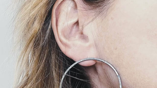 Large Hoop Stud Earrings in Oxidised Sterling Silver