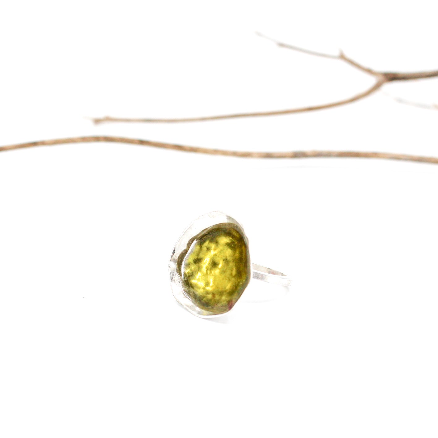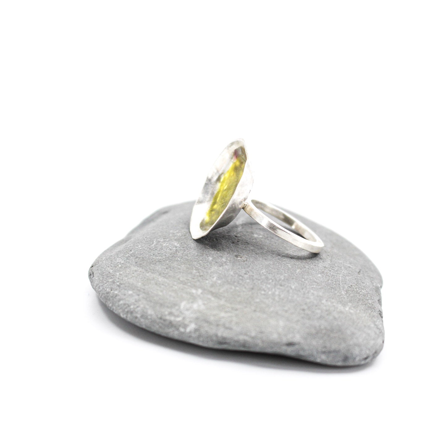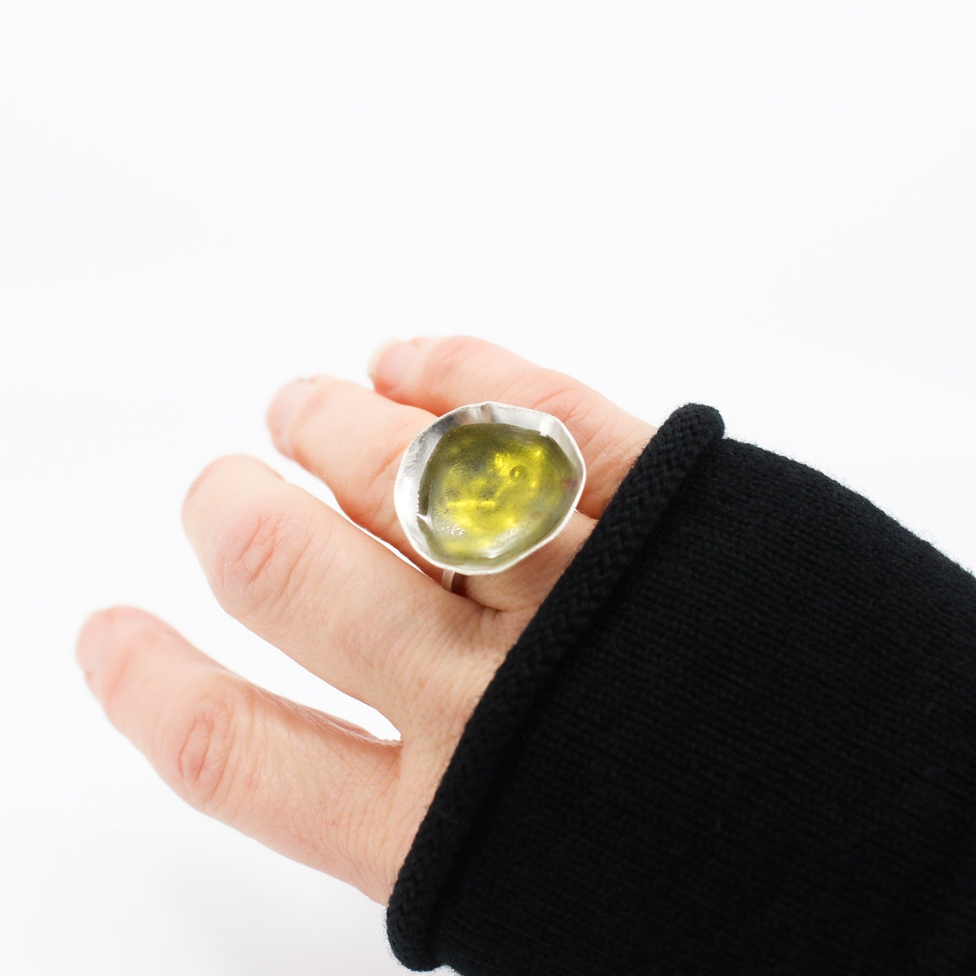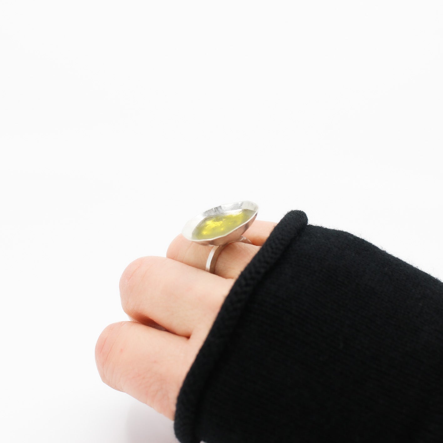big statement ring in 925 eco sterling silver filled with lime green resin