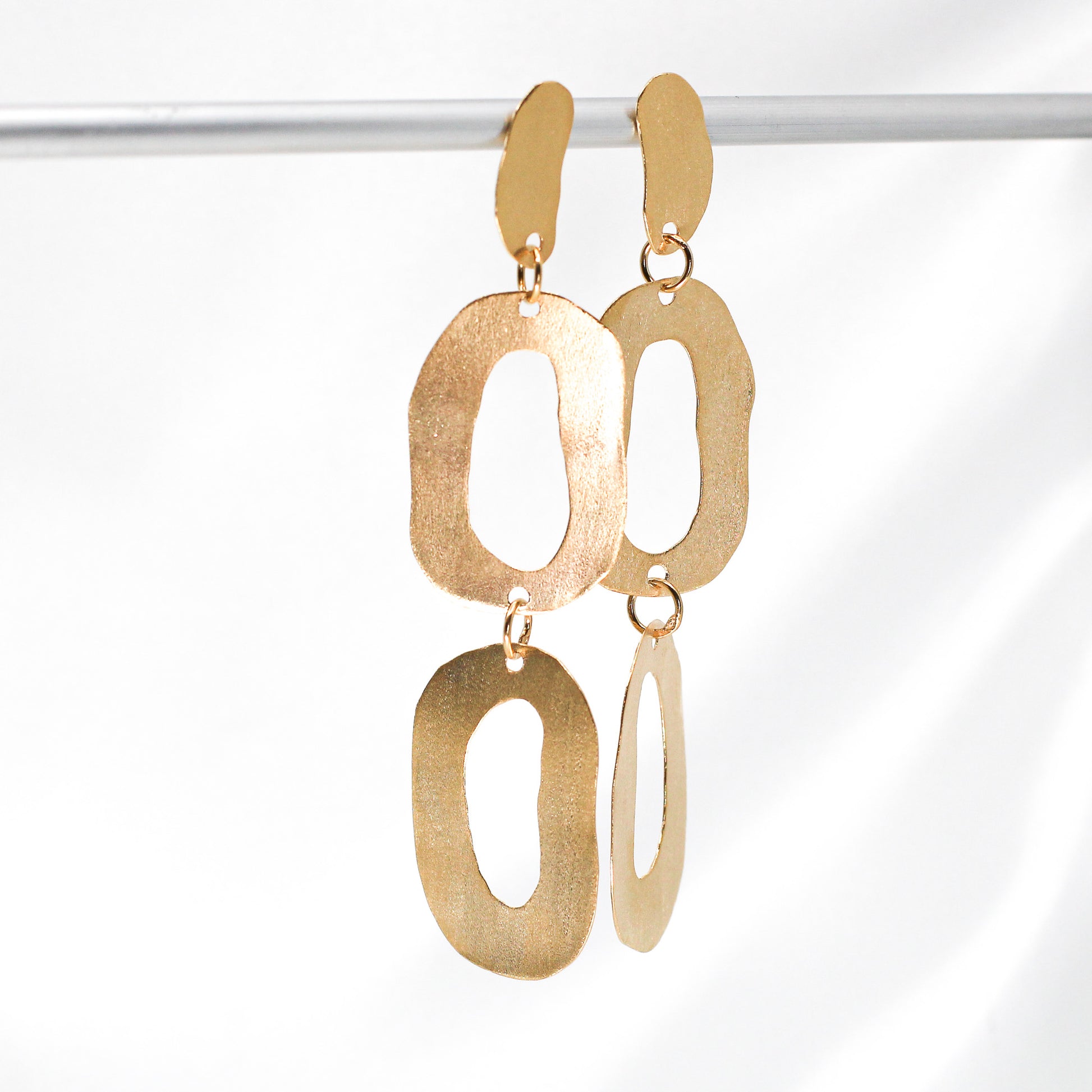 Step into style with this exclusive super leight weight pair of long, gold-plated earrings, designed for those who love a standout accessory.
