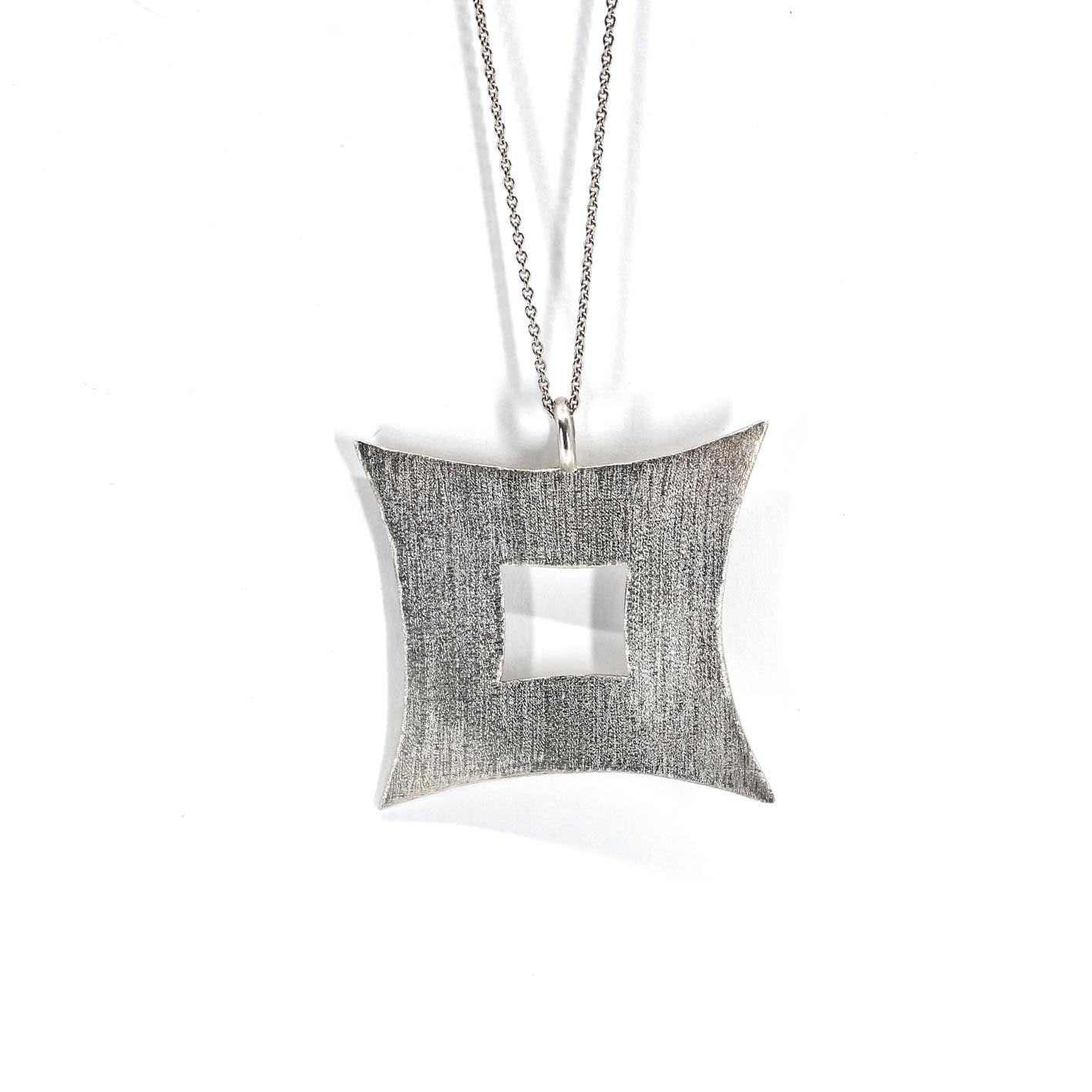 • hand cut and textured pointy square pendant, app. 48 / 48 mm in 925 solid eco sterling silver