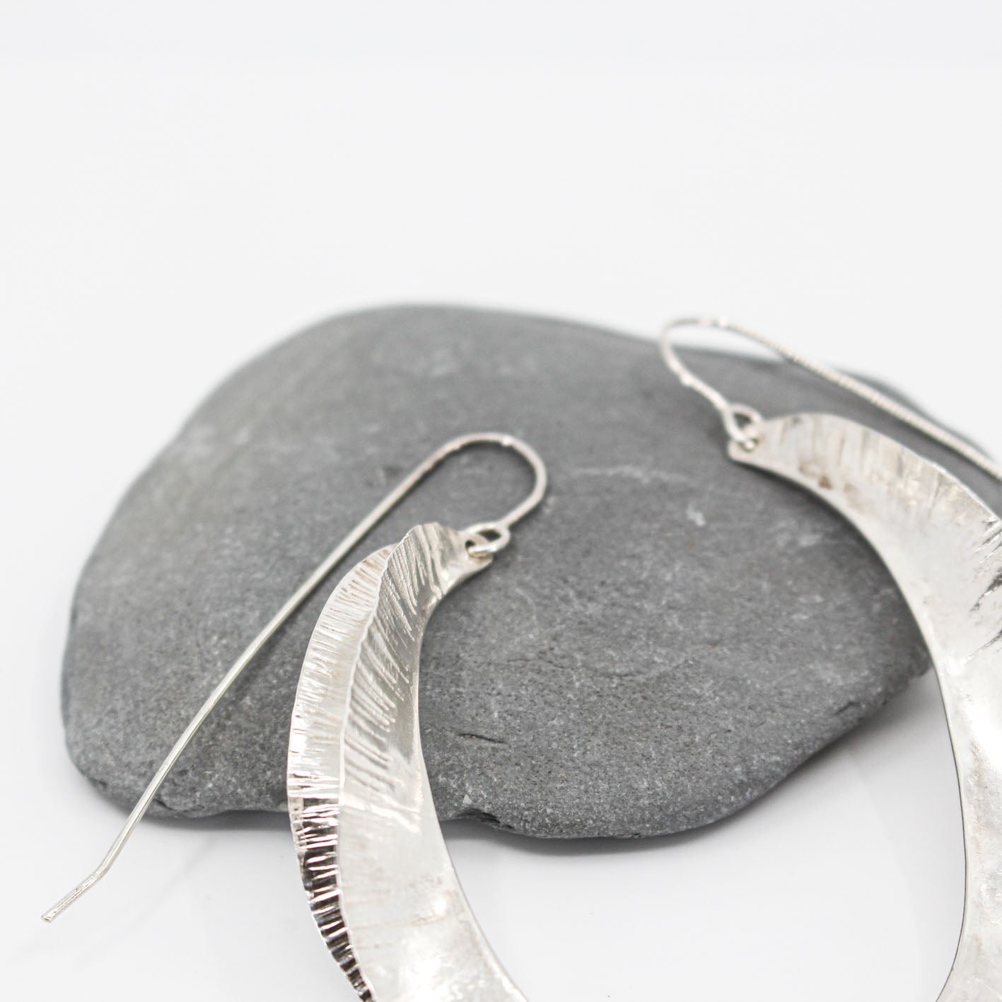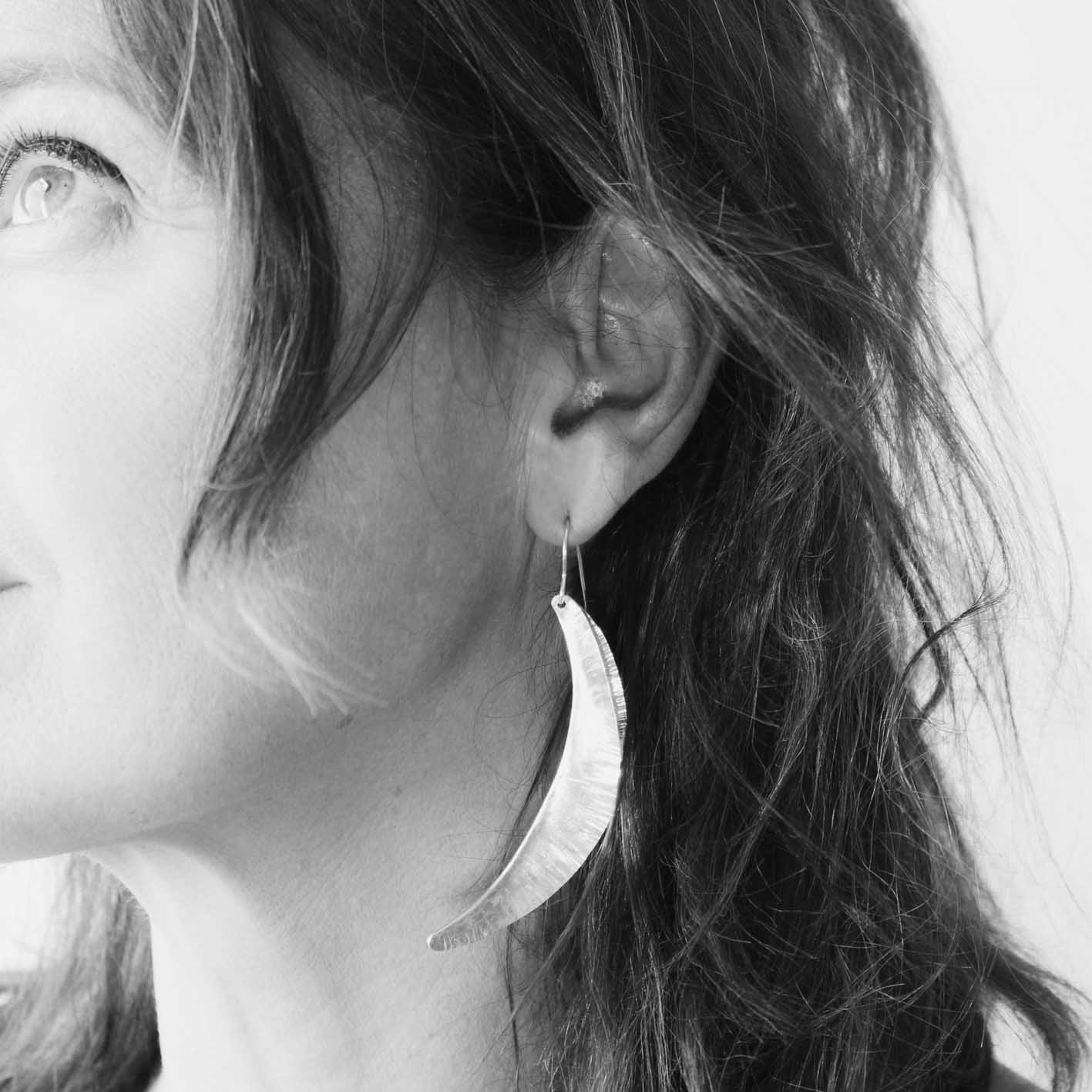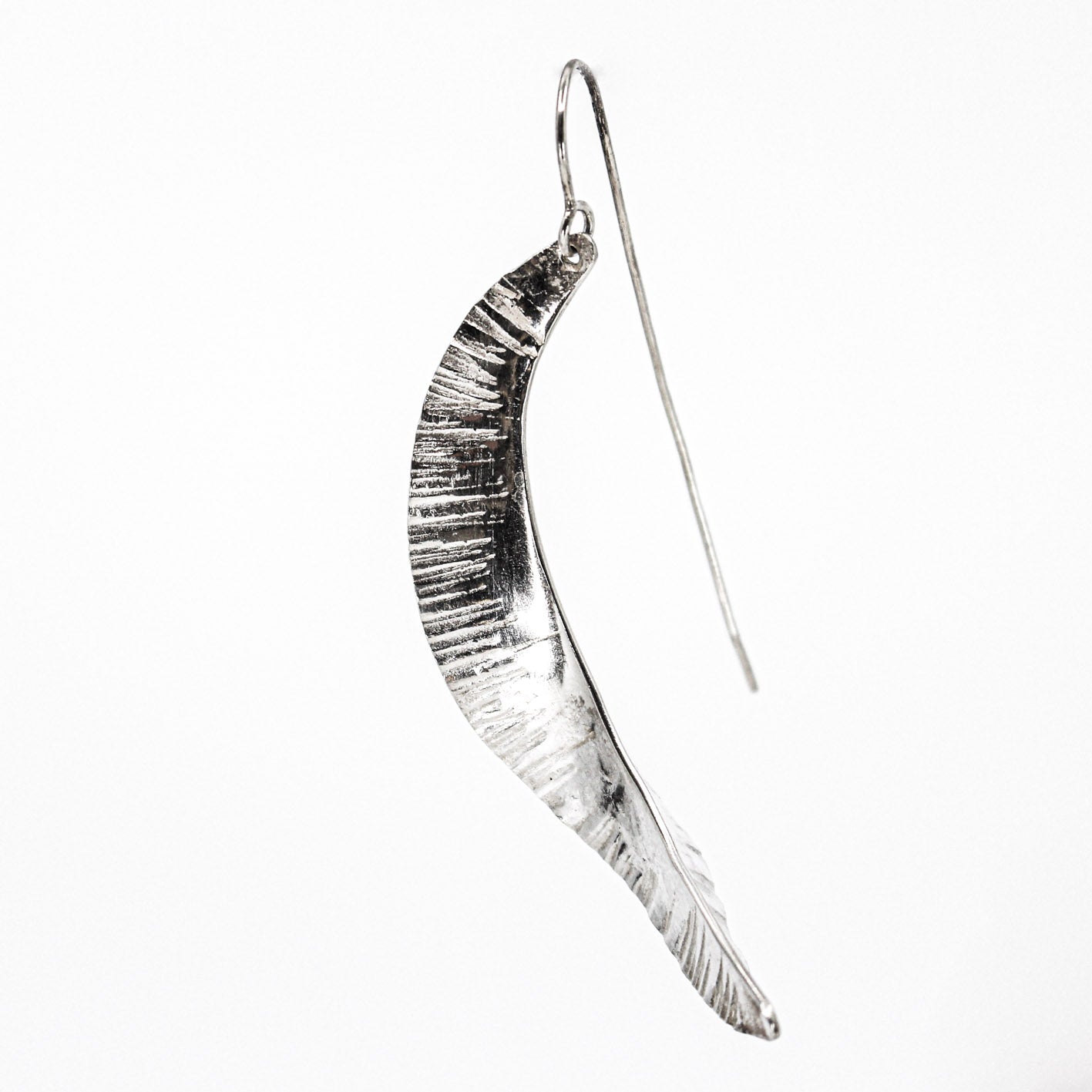 These stunning minimalist extra long but light weight silver earrings make an eye catching statement.