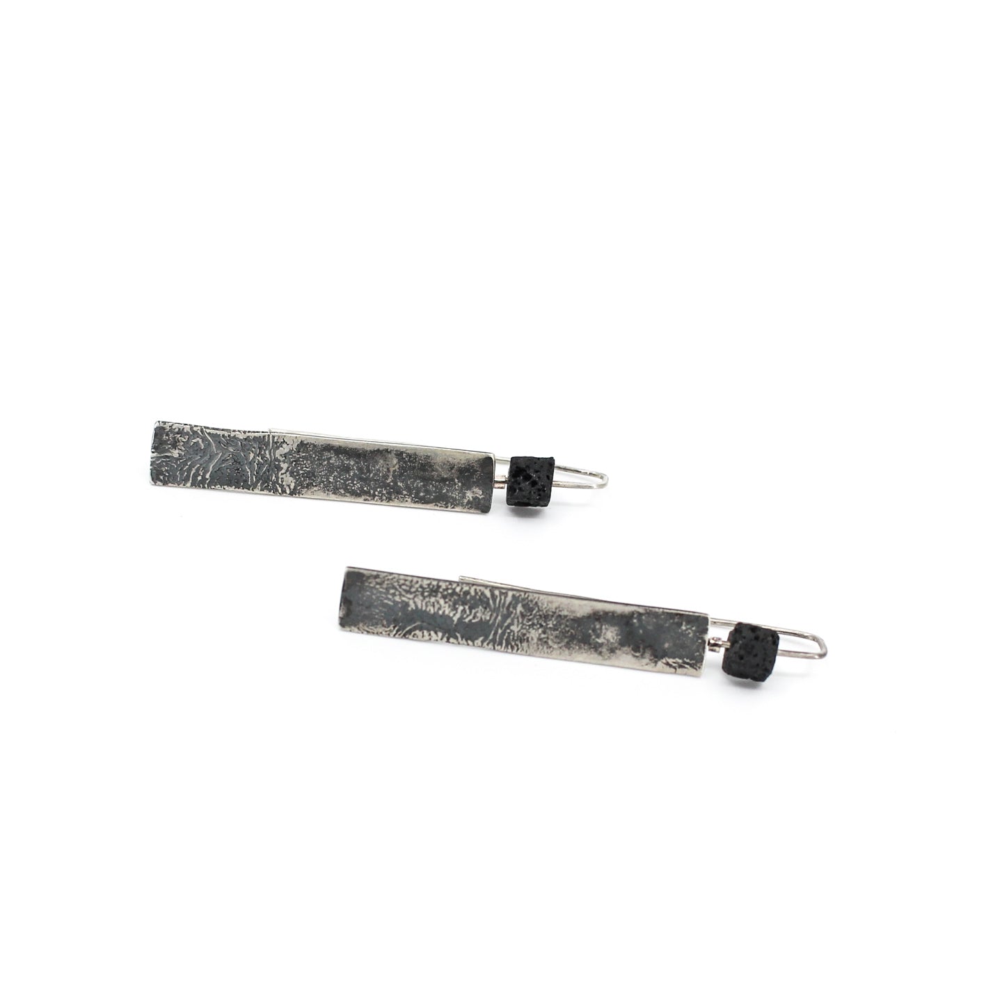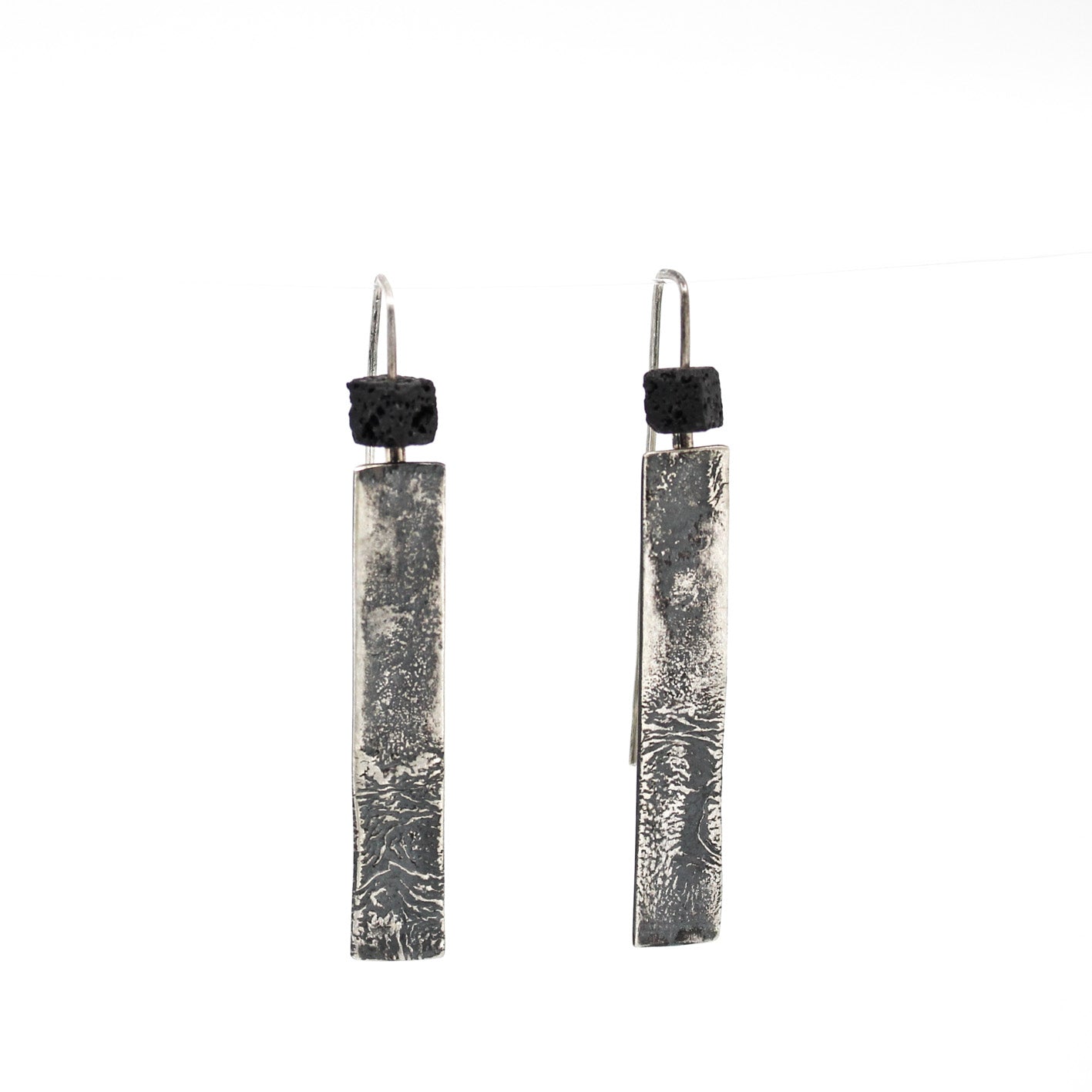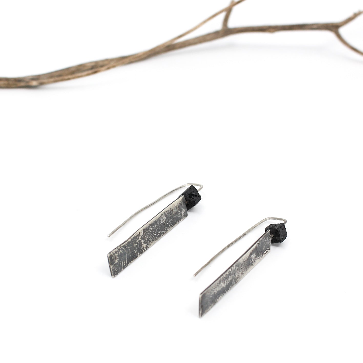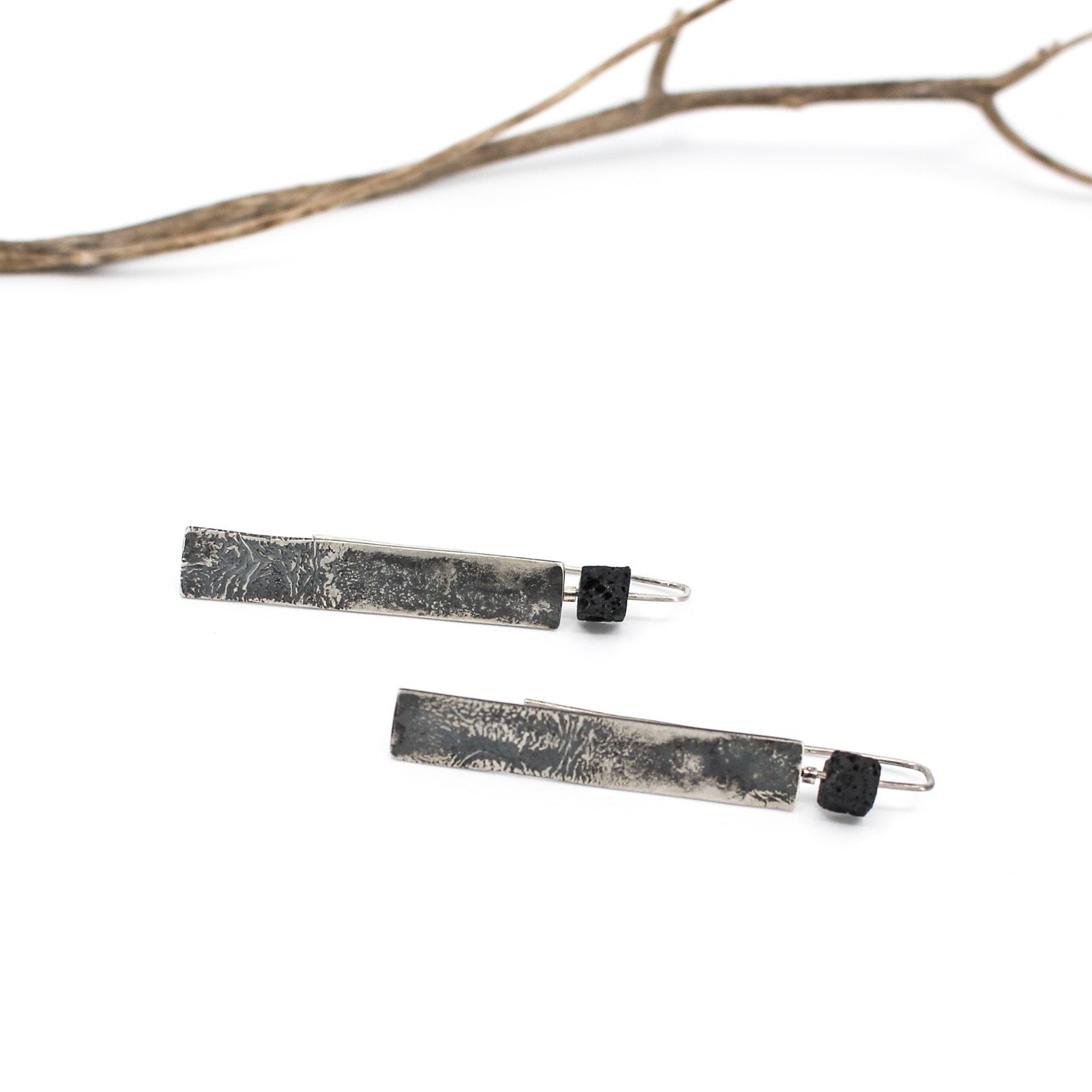 Long minimalist statement earrings in 925 sterling silver with a cubic lava bead.