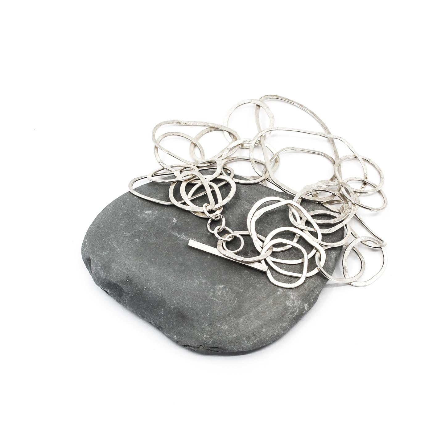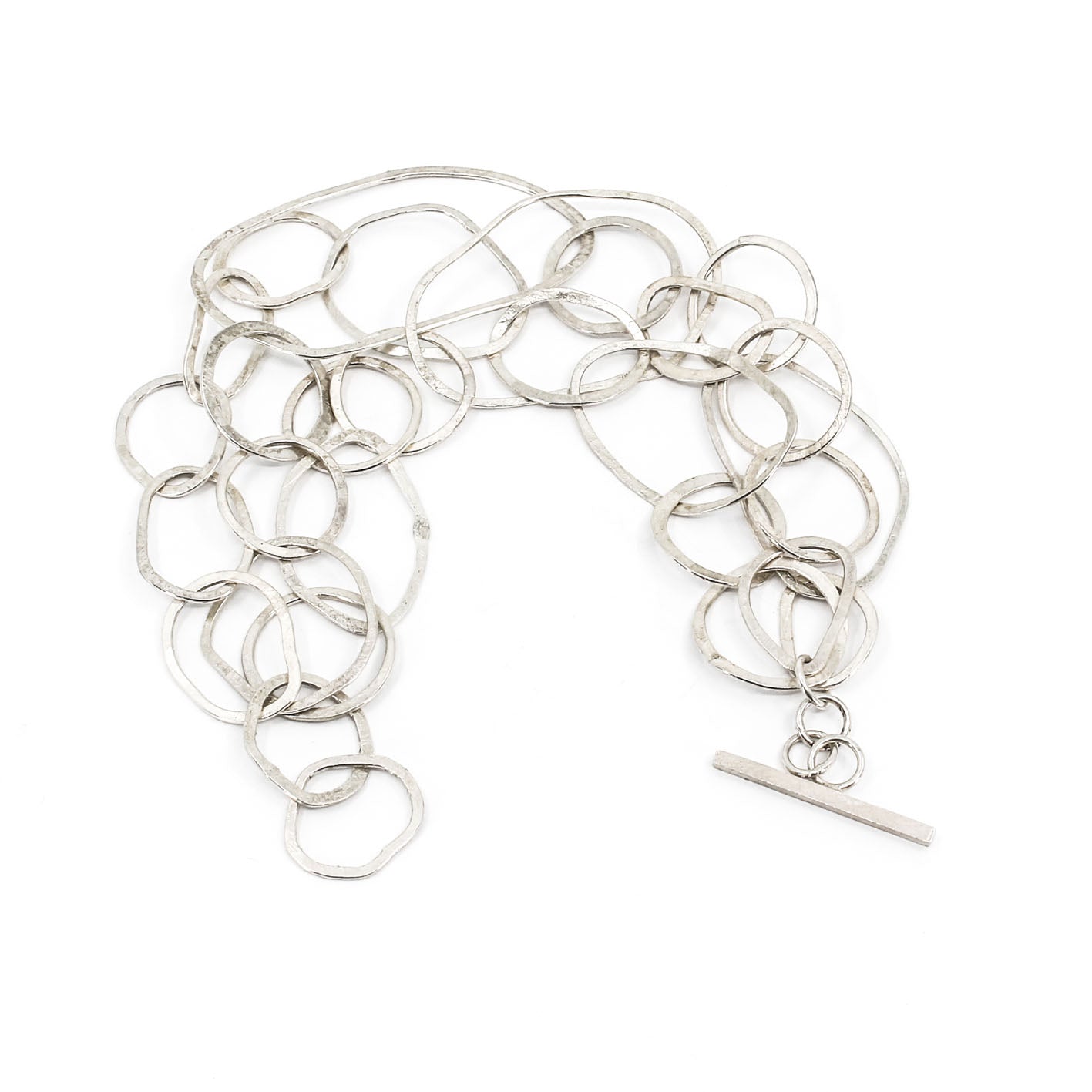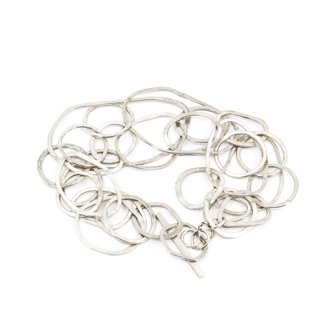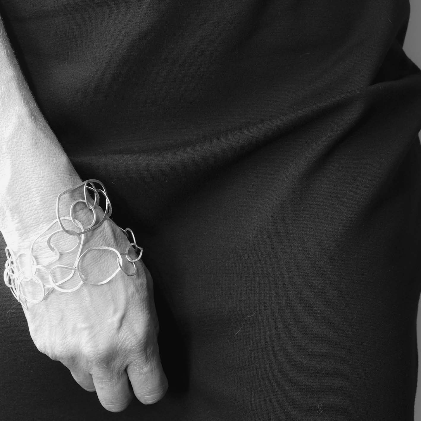 modern multi link sterling silver bracelet • hammered • handmade in France