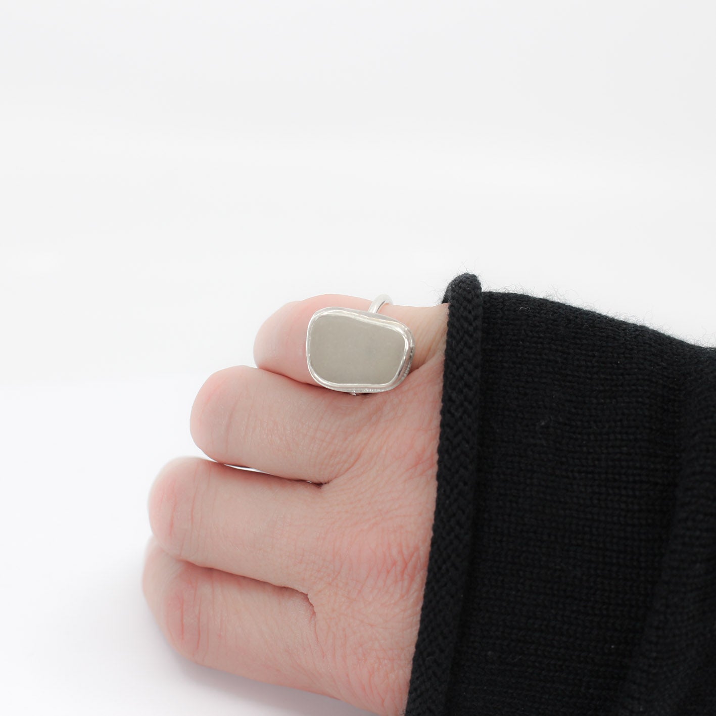 simple statement ring with pale grey green sea glass in 925 eco sterling silver sterling silver