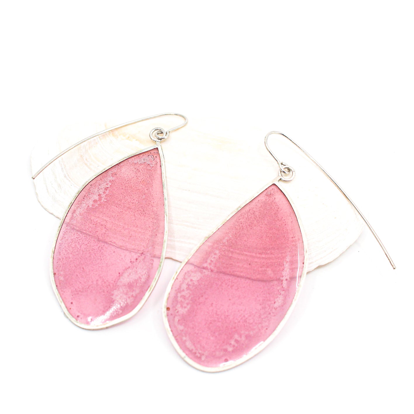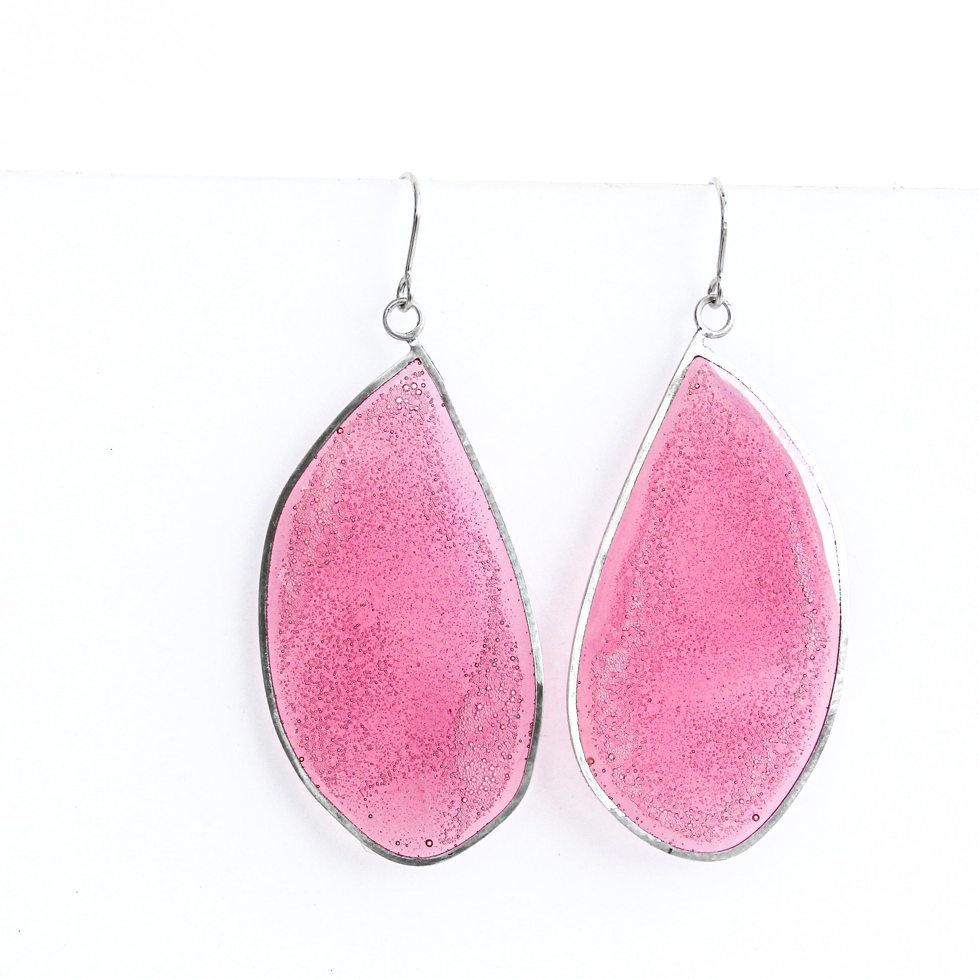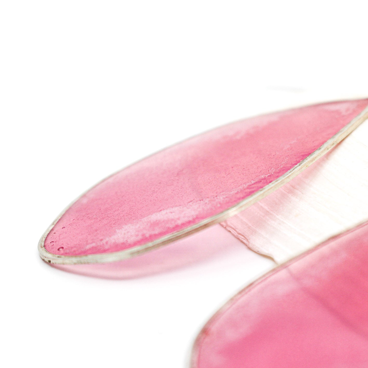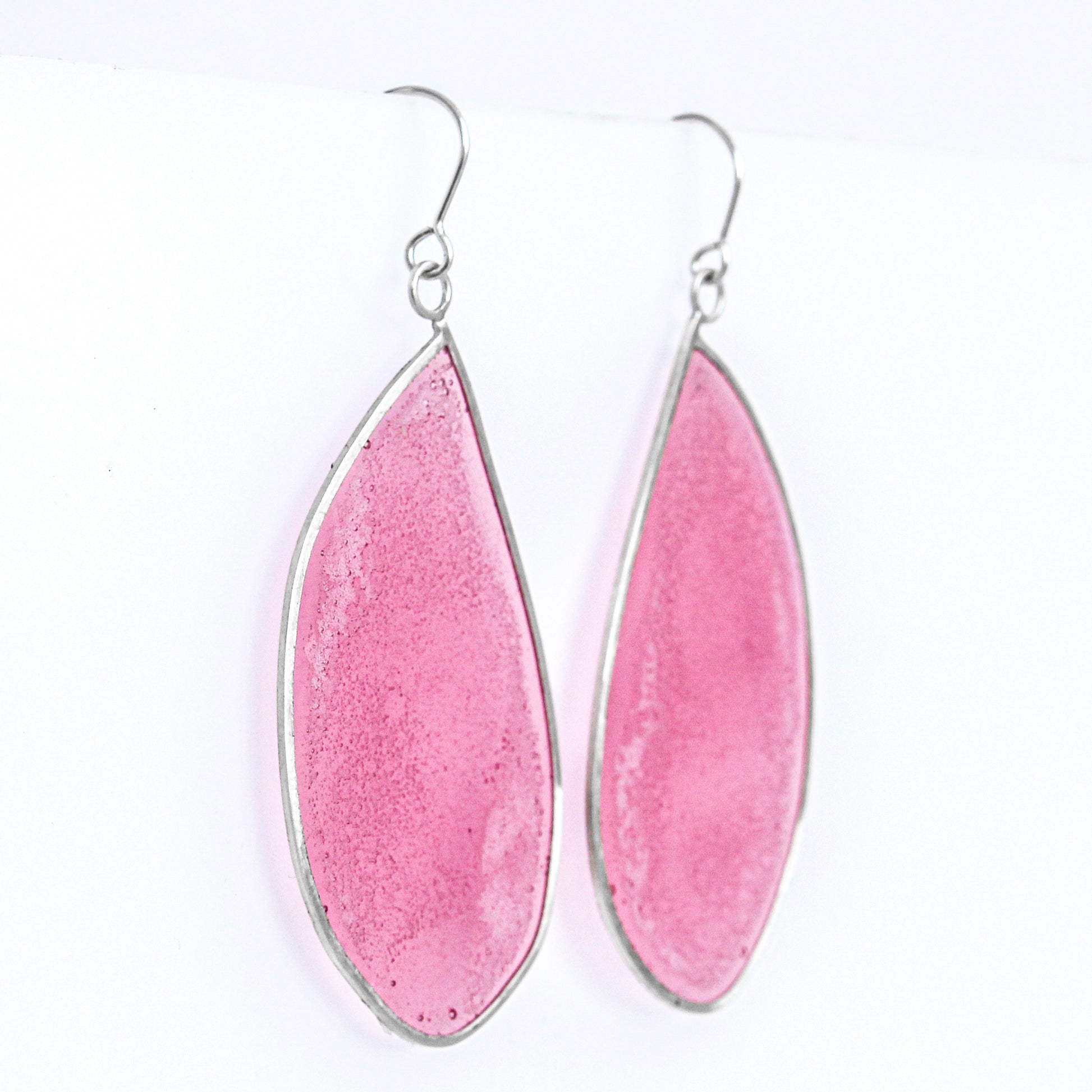 These super lightweight long pink drop earrings are made out of pink transparent resin in a 925 eco sterling silver frame.