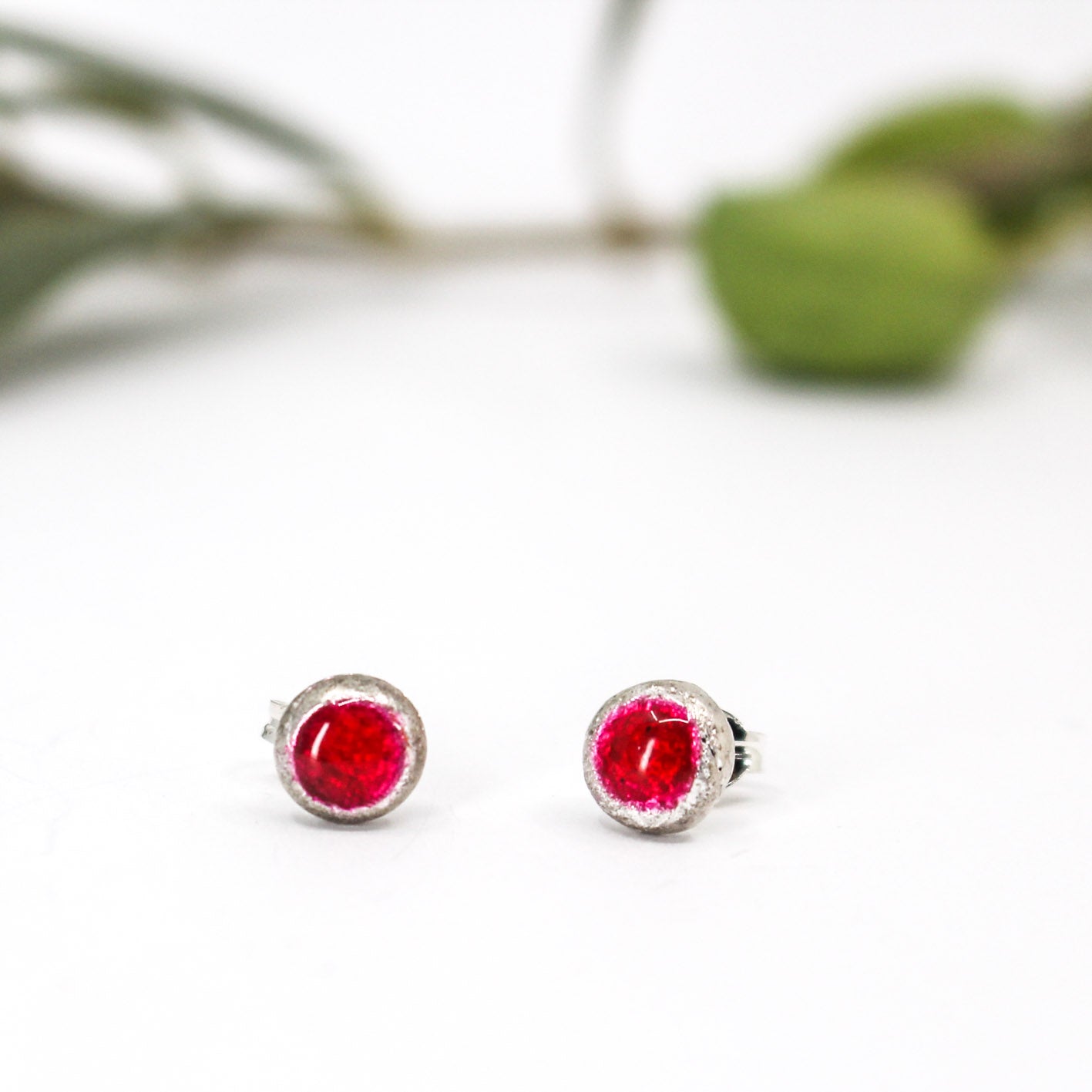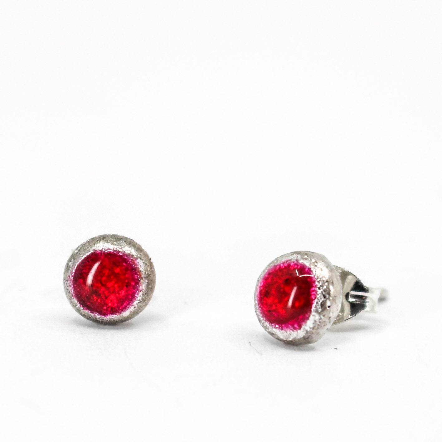 Add a pop of vibrant colour to your ensemble with our handmade red round small studs.