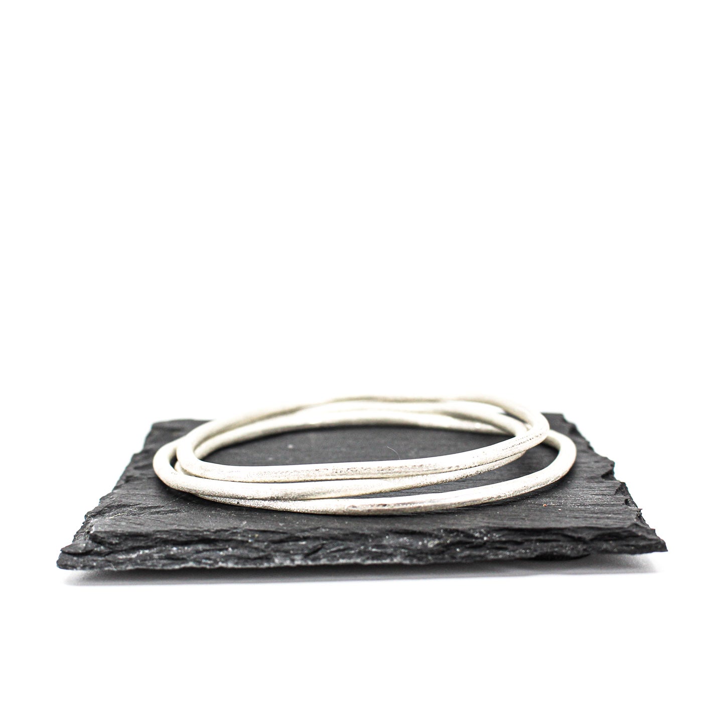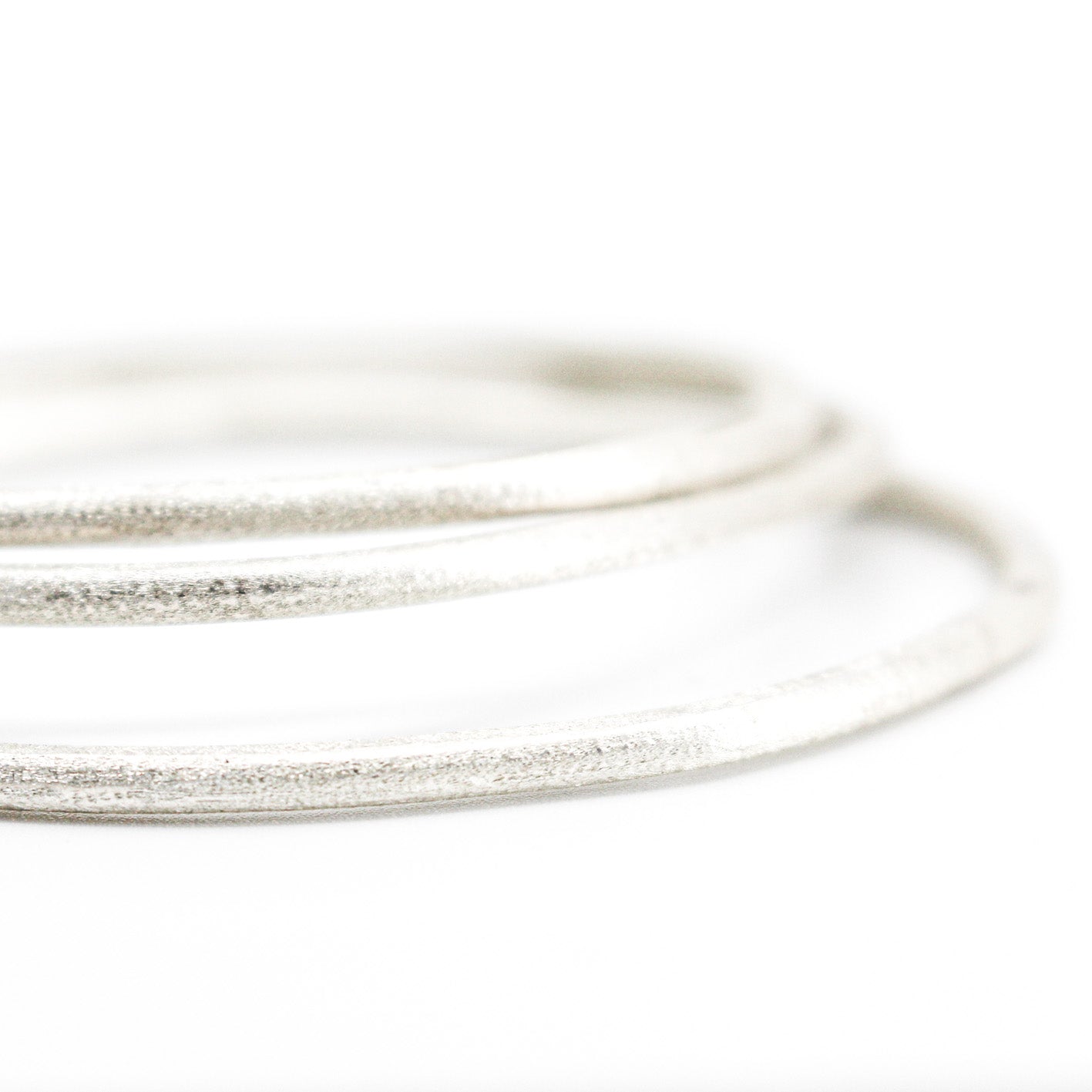 set of 3 stackable silver bangles • sterling silver, free form, textured