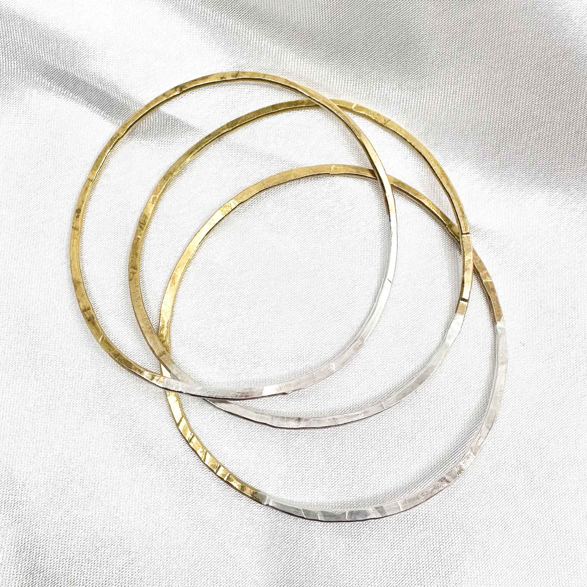 • each single bangle is hammered and textured by hand